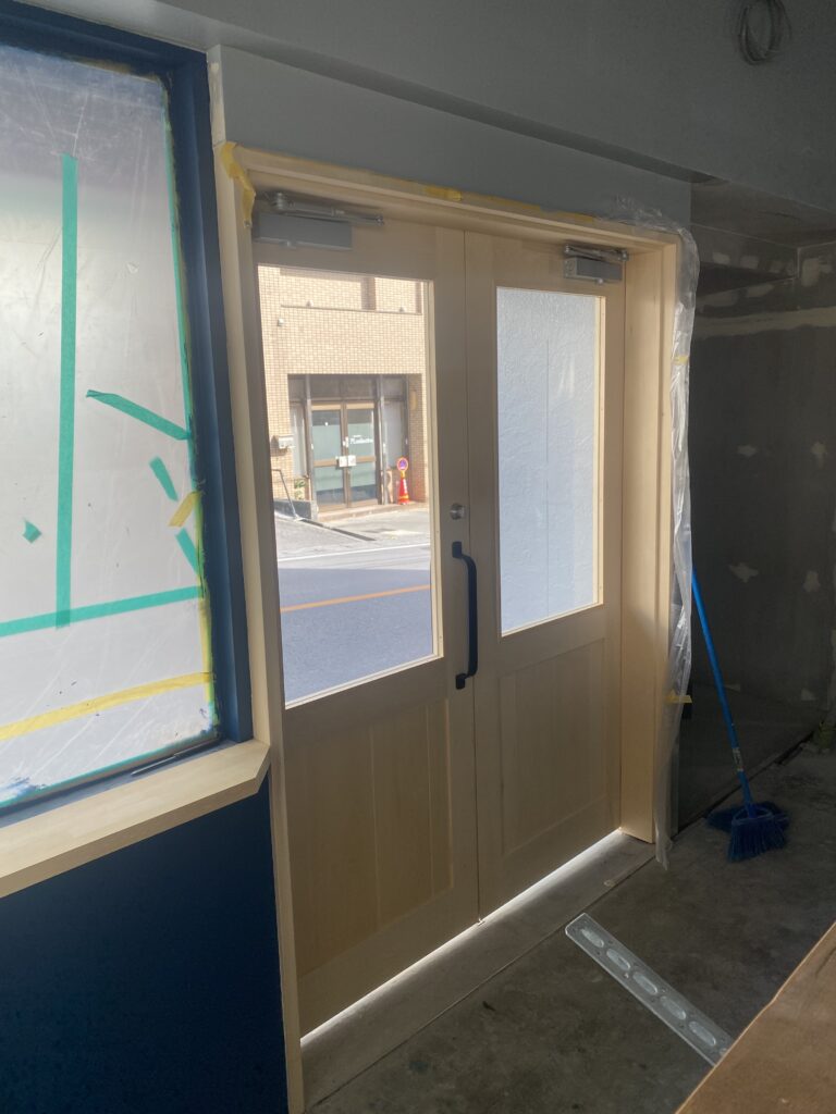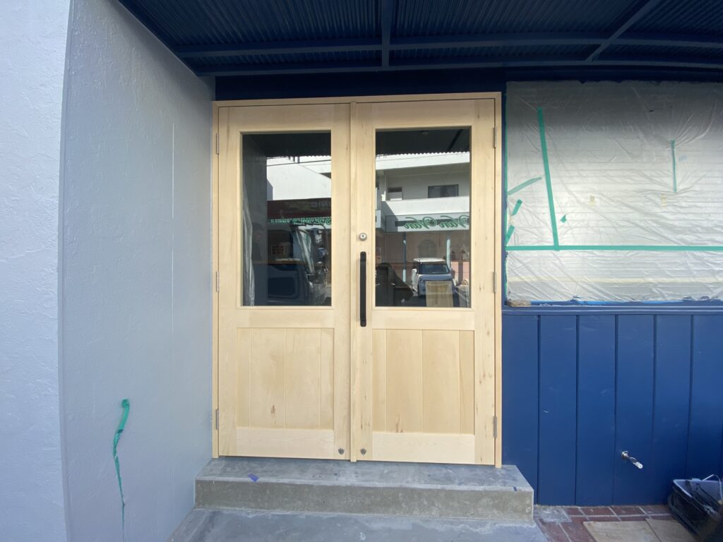 ヒバ材でかまち扉制作させていただきました。